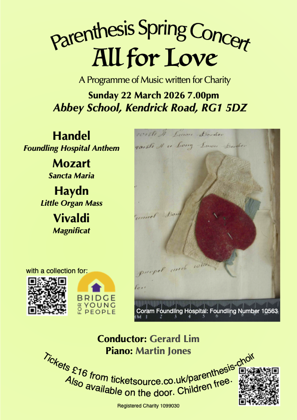 This concert, consisting of works originally written for charitable purposes, will support the work of Bridge for Young People, a local charity offering support to young people aged 16-25, many of whom are finding their feet after leaving social care or fostering.